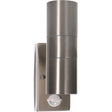 LED Wandlamp met Sensor 2x GU10 - Zilvergrijs Staal - IP44 - Up & Down - Bewegingssensor
