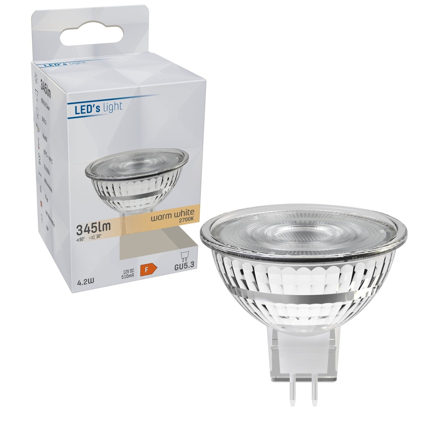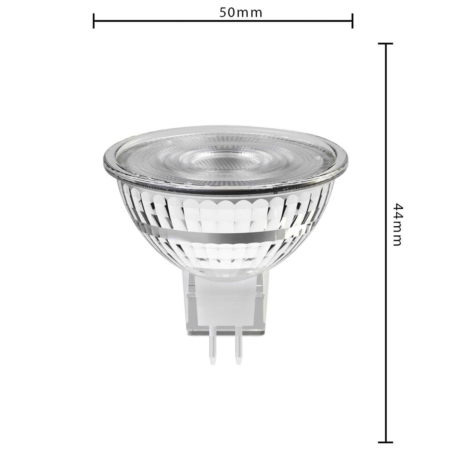 Deze GU5.3 LED spot heeft een MR16 formaat met een diameter van 50mm en past in vrijwel alle standaard inbouwspots en armaturen. De smalle stralingshoek van 36 graden geeft een gerichte lichtbundel, ideaal voor accentverlichting en het uitlichten van specifieke objecten zoals kunstwerken, vitrines of decoratie. Het warmwitte licht van 2700K met een kleurtemperatuur van 2700K zorgt voor een gezellige, warme sfeer. Met een lichtopbrengst van 380 lumen (345 lumen bruikbaar) is deze spot perfect voor inbouwspots, plafondspots, vitrinelampen en tafellampen.