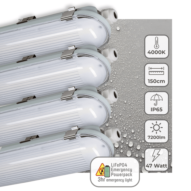 4 PACK - LED's Light PRO LED TL armatuur 150 cm - Met noodaccu - 4 lichtstanden - 47W