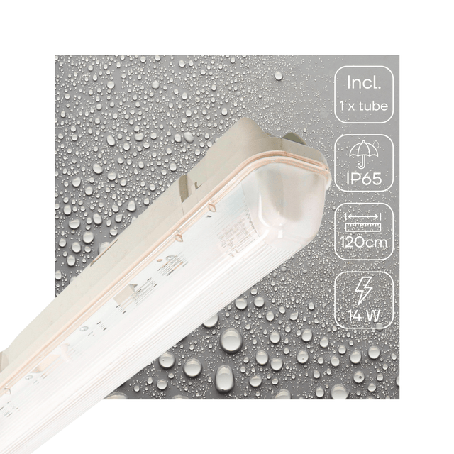 Deze duurzame en milieuvriendelijke armaturen hebben een levensduur van maar liefst 25.000 uur. Het armatuur incl. LED TL buis realiseert met een verbruik van slechts 14W een vergelijkbare lichtopbrengst als een traditionele 18W TL buis. Hij heeft een helderheid van 1100 lumen met een kleurtemperatuur van 4000K.