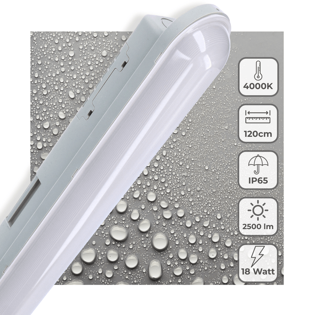 Dankzij de IP65-bescherming is deze LED TL verlichting geschikt voor zowel binnen- als buitentoepassingen. Het armatuur is bestand tegen stof en spatwater, waardoor het perfect is voor gebruik in vochtige omgevingen zoals badkamers, garages, terrassen en overdekte buitenruimtes. Creëer een heldere en goed verlichte omgeving waar je maar wilt.
