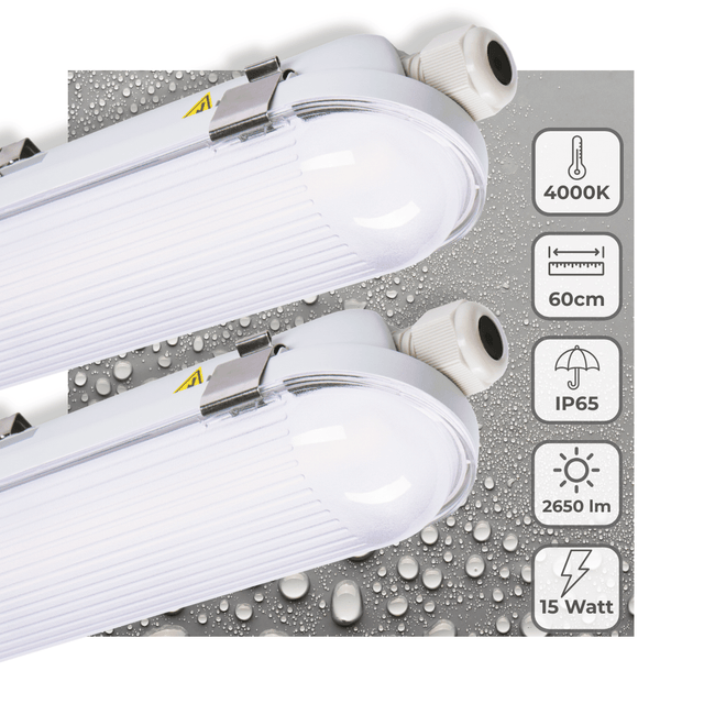 2 PACK - LED's Light Pro TL Armatuur Strip 60 cm - Energielabel B - IP65 waterdicht - 2650 lm