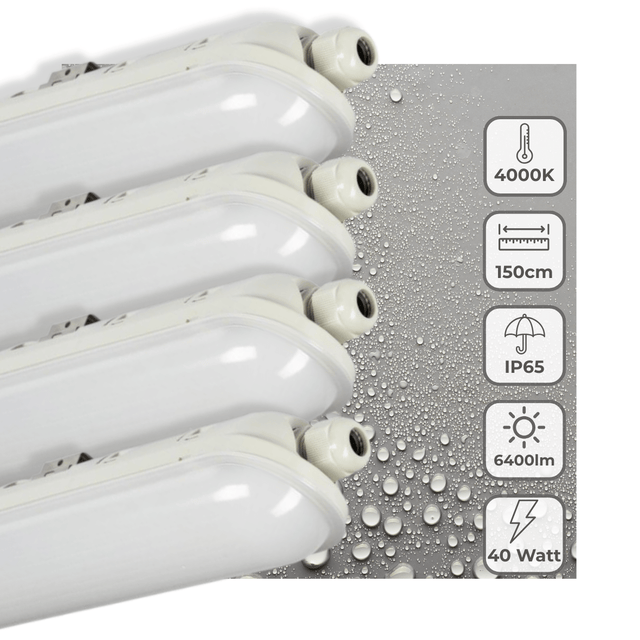 4 PACK - LED's Light Pro Premium LED TL armatuur compleet 150 cm - Waterdicht - 6400 lm