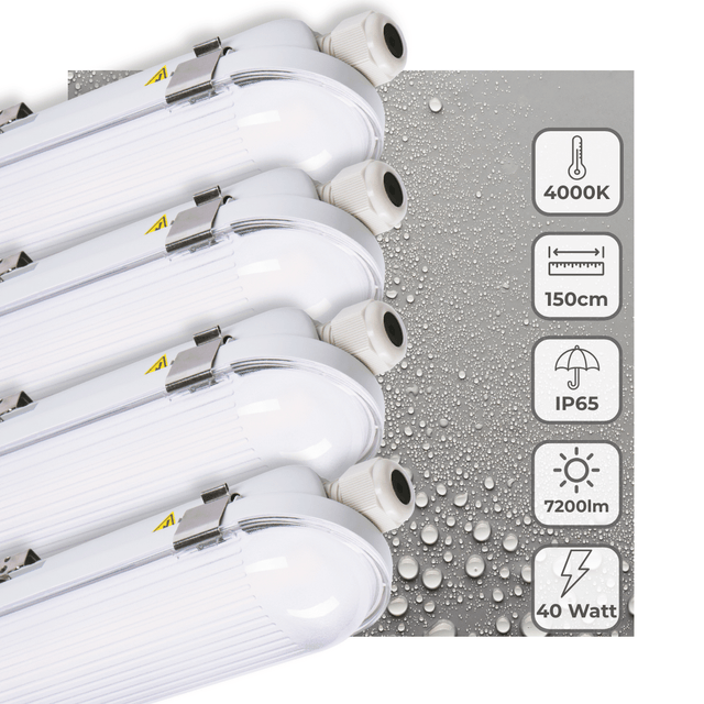 4 PACK - LED's Light Pro TL armatuur 150 cm - 40W - Energielabel B - Dimbaar licht - 7200 lm - 180Lm/W - IP65 - 4000K - IK08
