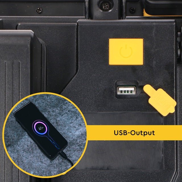 En weet je wat ook handig is? De draadloze bouwlamp is aan de achterzijde voorzien van een USB-poort. Hierdoor kun je de bouwlamp ook als powerbank gebruiken, bijvoorbeeld voor het tussentijds opladen van je smartphone.