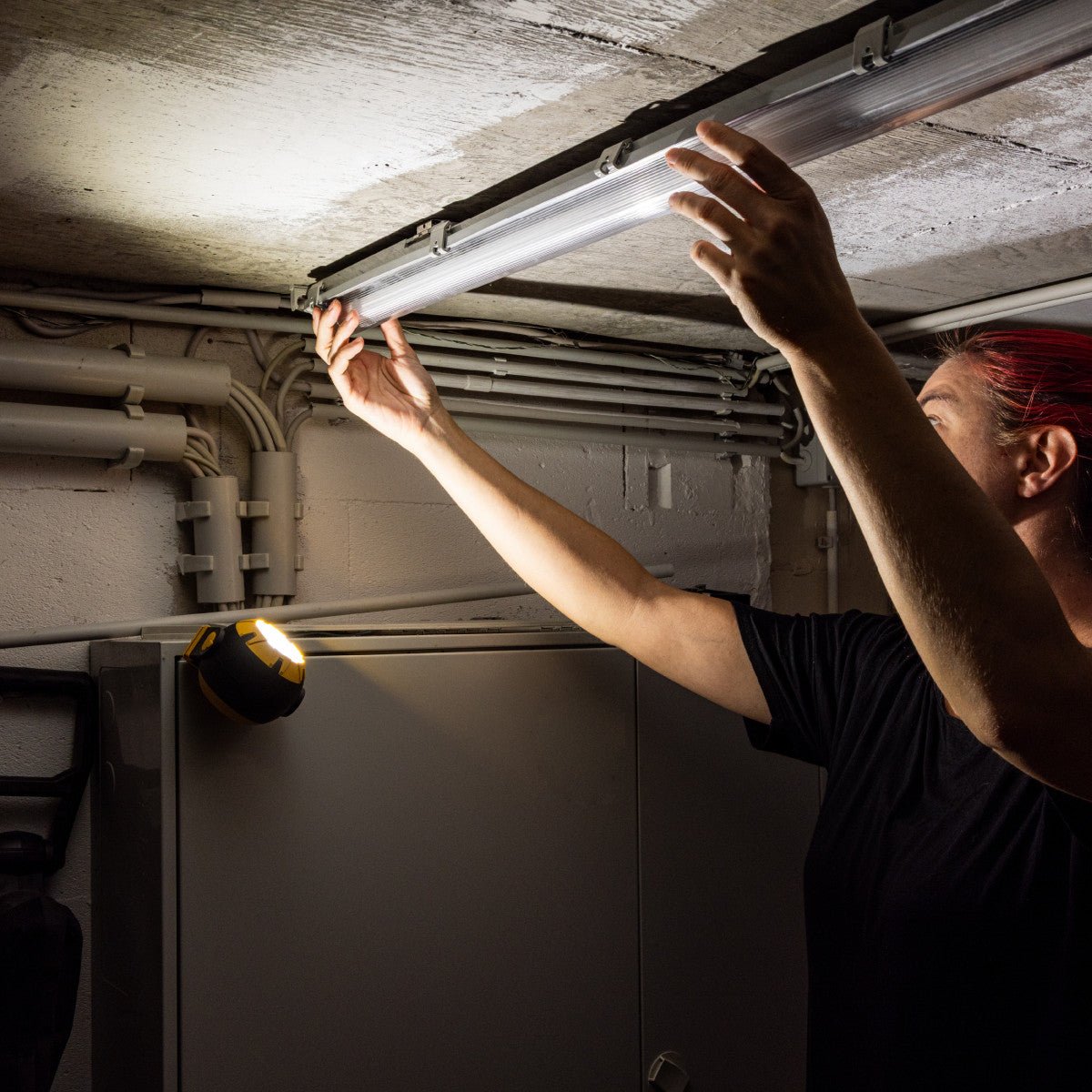 Dankzij de stevige polycarbonaat behuizing en de IP54-bescherming is deze lamp bestand tegen stof en spatwater. En of het nu -20°C of +40°C is, hij blijft perfect werken. Ideaal voor garages, werkplaatsen, kamperen of noodsituaties.