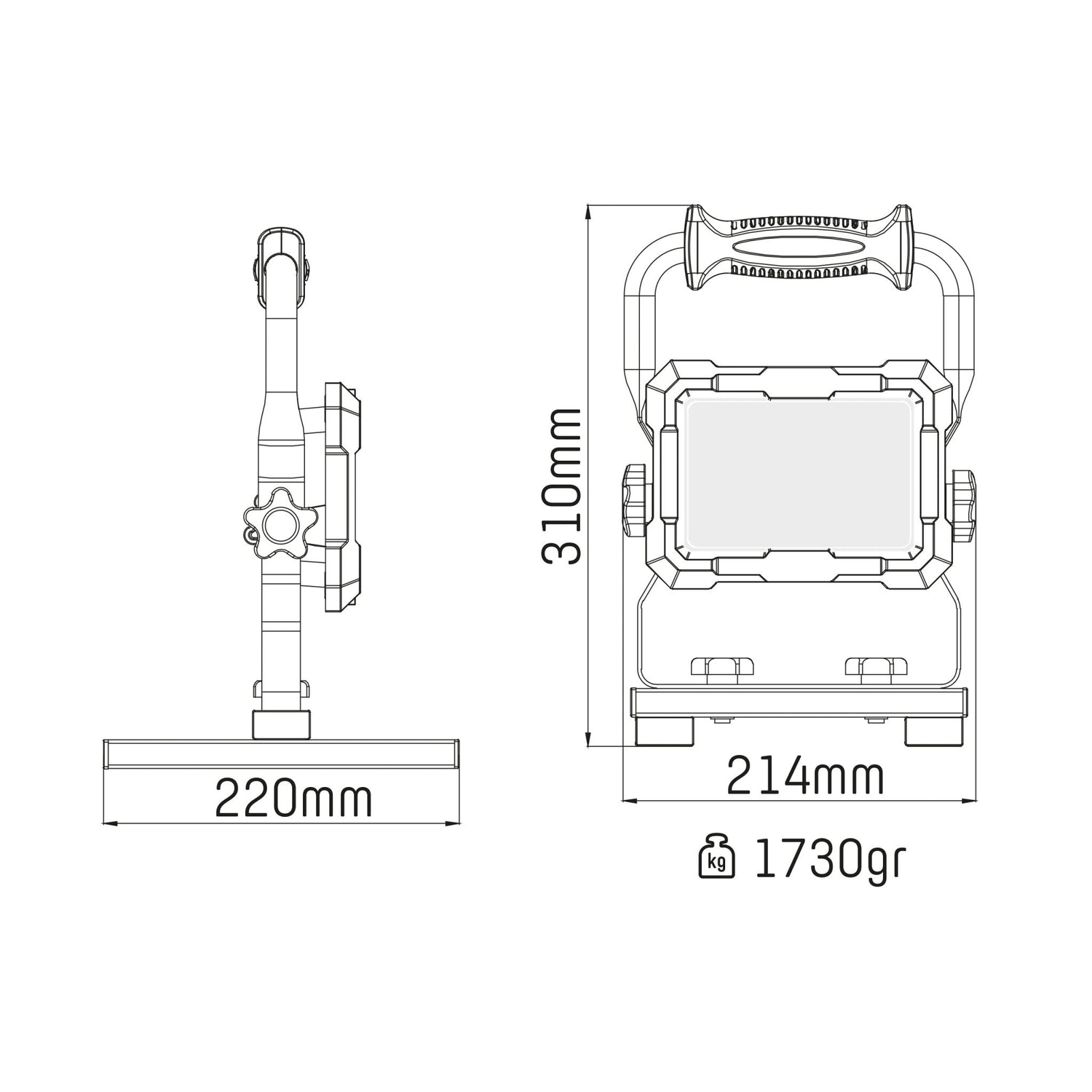 De 50W LED bouwlamp is niet alleen Rough Service Tested, ook heeft hij de IP65 en IK08 certificeringen. Hierdoor is deze bouwlamp onaantastbaar voor vocht, stof en val- en stootschade. Zelfs waterstralen doen deze bouwlamp niets. In de stromende regen aan het werk zijn vindt bijna niemand leuk, maar met deze bouwlamp kán het wel!