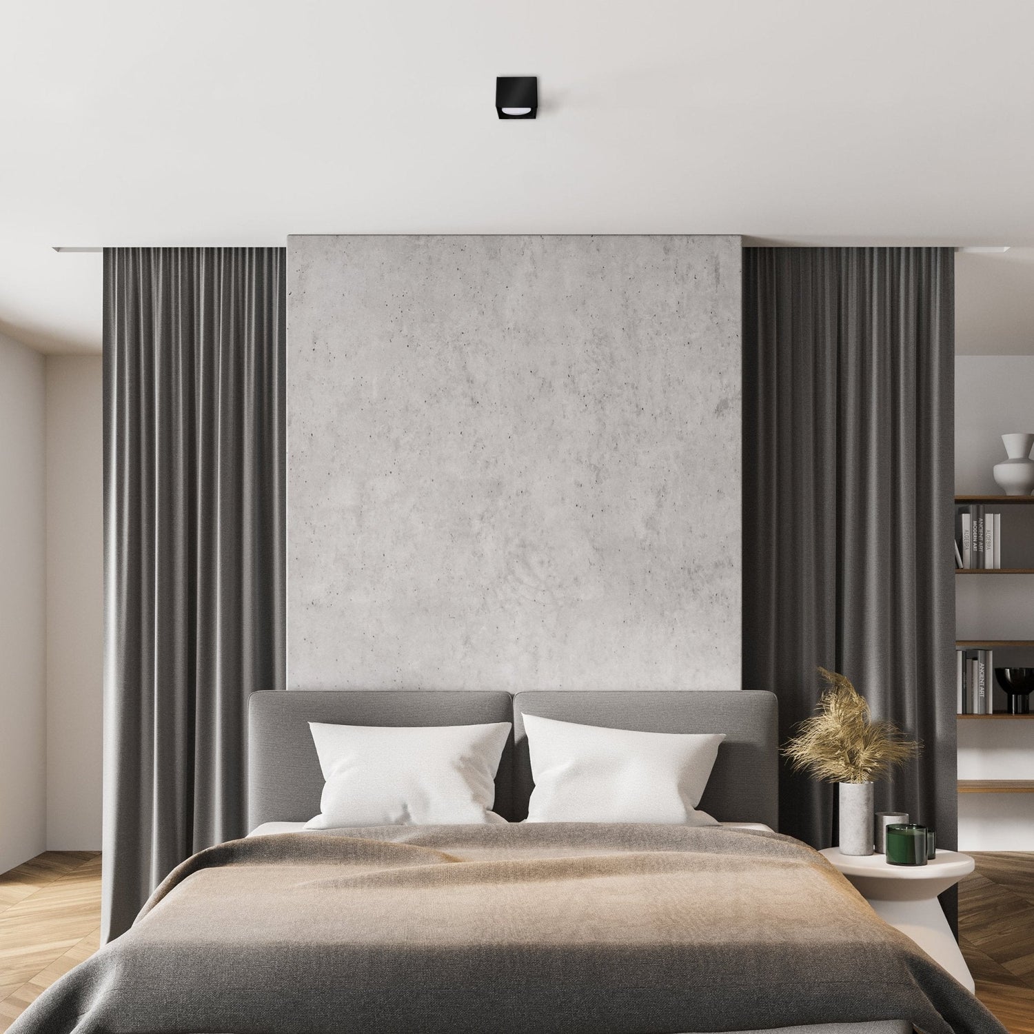 Stilvolle schwarze Deckenaufbauleuchte mit drehbarer Lichtquelle