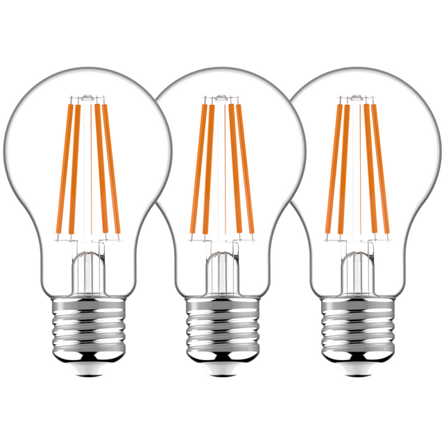 LED-Filamentlampen E27 – Transparent – Warmweiß – 806 lm – 3er-Pack