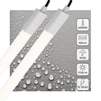 Dank ihres IP65-zertifizierten Gehäuses sind diese LED-TL-Leuchten äußerst staub- und wasserbeständig (Strahlwasser). Wie Sie sich wahrscheinlich denken können, eignen sie sich auch ideal für den Einsatz im Freien und in feuchten Umgebungen.