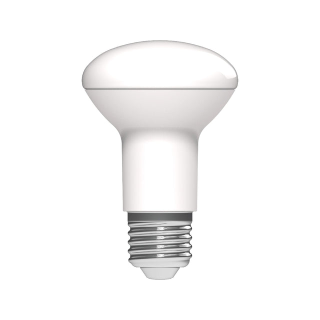 Diese Lampe verfügt über einen Reflektor der Form R63 mit einem Durchmesser von 63 mm und einer Höhe von 97 mm. Die Standard-E27-Fassung passt zu den meisten Wand-, Tisch- und Strahlern. Dank ihres geringen Gewichts von nur 42 Gramm eignet sie sich für nahezu jede Leuchte. Die Lampe besteht aus Polycarbonat mit einer matten, opalen Oberfläche für optimalen Lichtkomfort und einer reflektierenden Fläche für fokussiertes Licht.