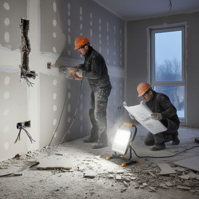 Diese leistungsstarke 50-W-LED-Arbeitsleuchte liefert beeindruckende 5500 Lumen helles, kaltweißes Licht und eignet sich perfekt für professionelle Anwendungen und Heimwerkerprojekte. Dank zweier integrierter Steckdosen können Sie Elektrowerkzeuge direkt anschließen, was die Leuchte besonders praktisch für jeden Arbeitsplatz macht. Die Schutzart IP54 und die Stoßfestigkeit IK08 gewährleisten einen robusten Einsatz im Innen- und Außenbereich.