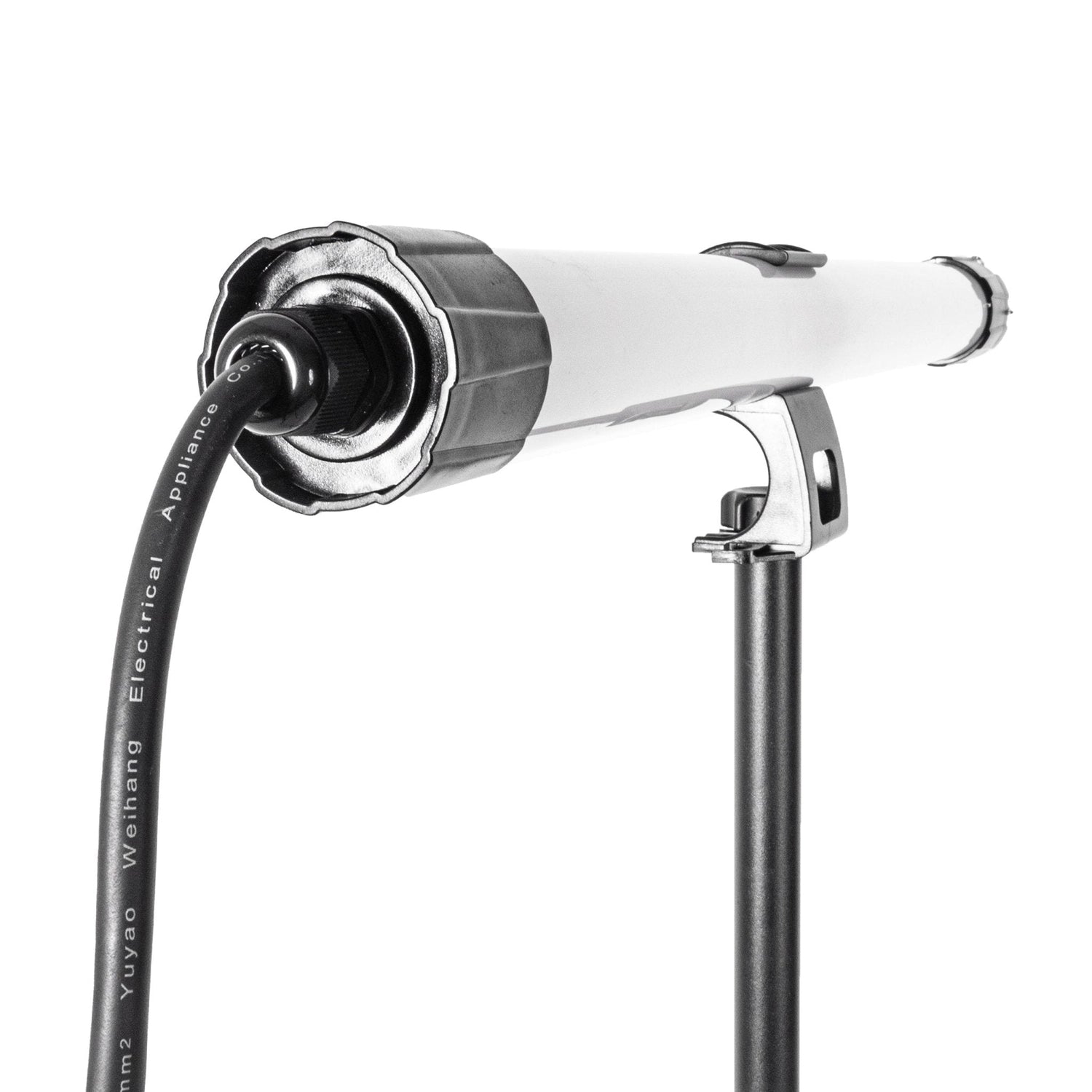 Die Lampe ist nach Schutzklasse II zertifiziert und somit doppelt isoliert für erhöhte Sicherheit. Sie hat eine Lebensdauer von 25.000 Stunden – bei 8 Stunden Nutzung pro Tag hält sie über 8 Jahre. Dank ihrer kompakten Abmessungen von 830 x 120 x 60 Millimetern lässt sie sich leicht verstauen. Mit 2 Jahren Garantie können Sie sich auf die Qualität verlassen.