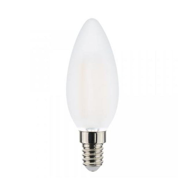 - Kerzenförmige LED-Lampe mit mattweißer Beschichtung und kleiner E14-Fassung