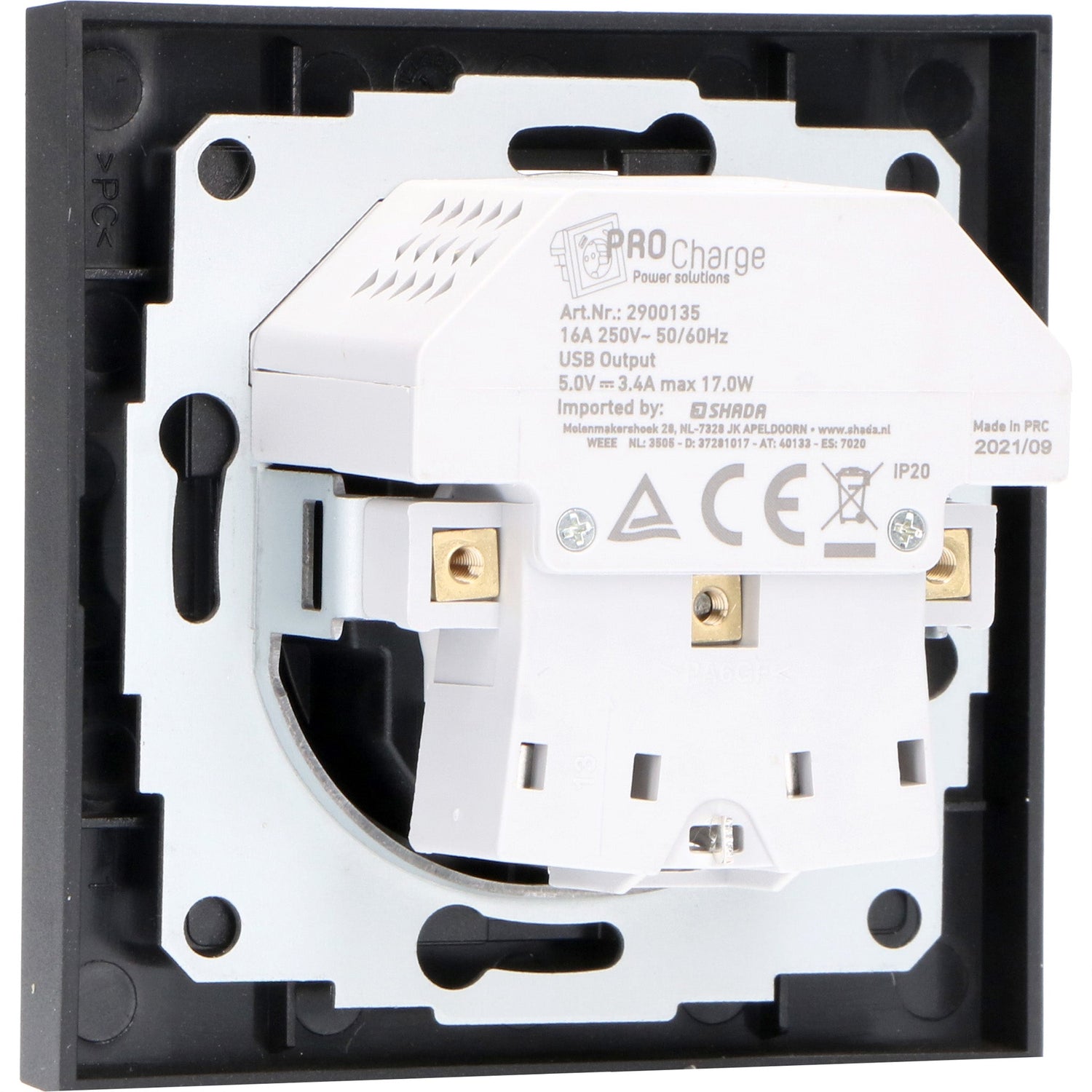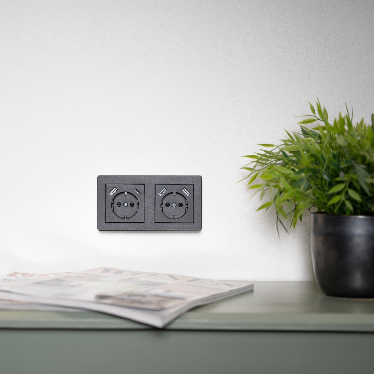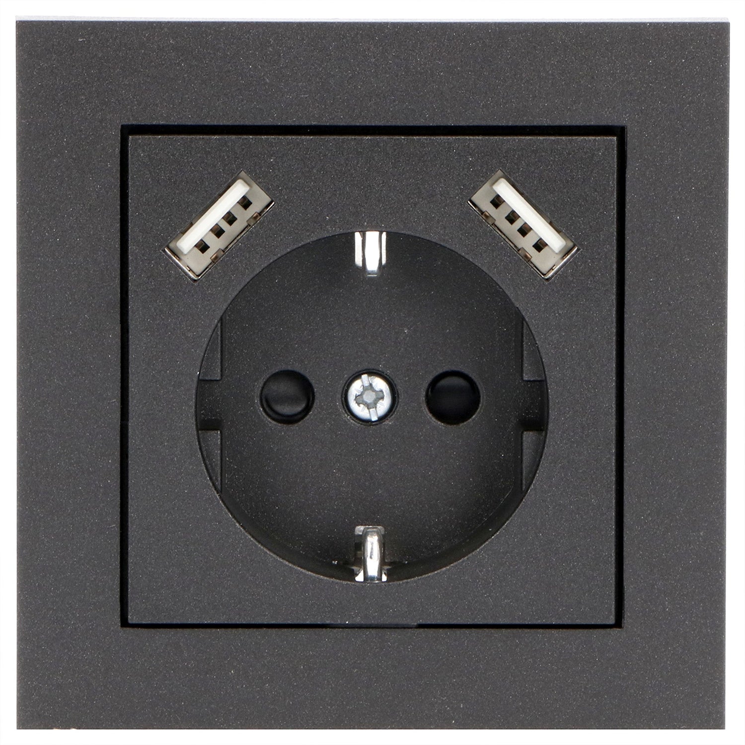 Reflex-Einsatzplatte für Wandsteckdose mit 2 USB-Anschlüssen – Schwarz