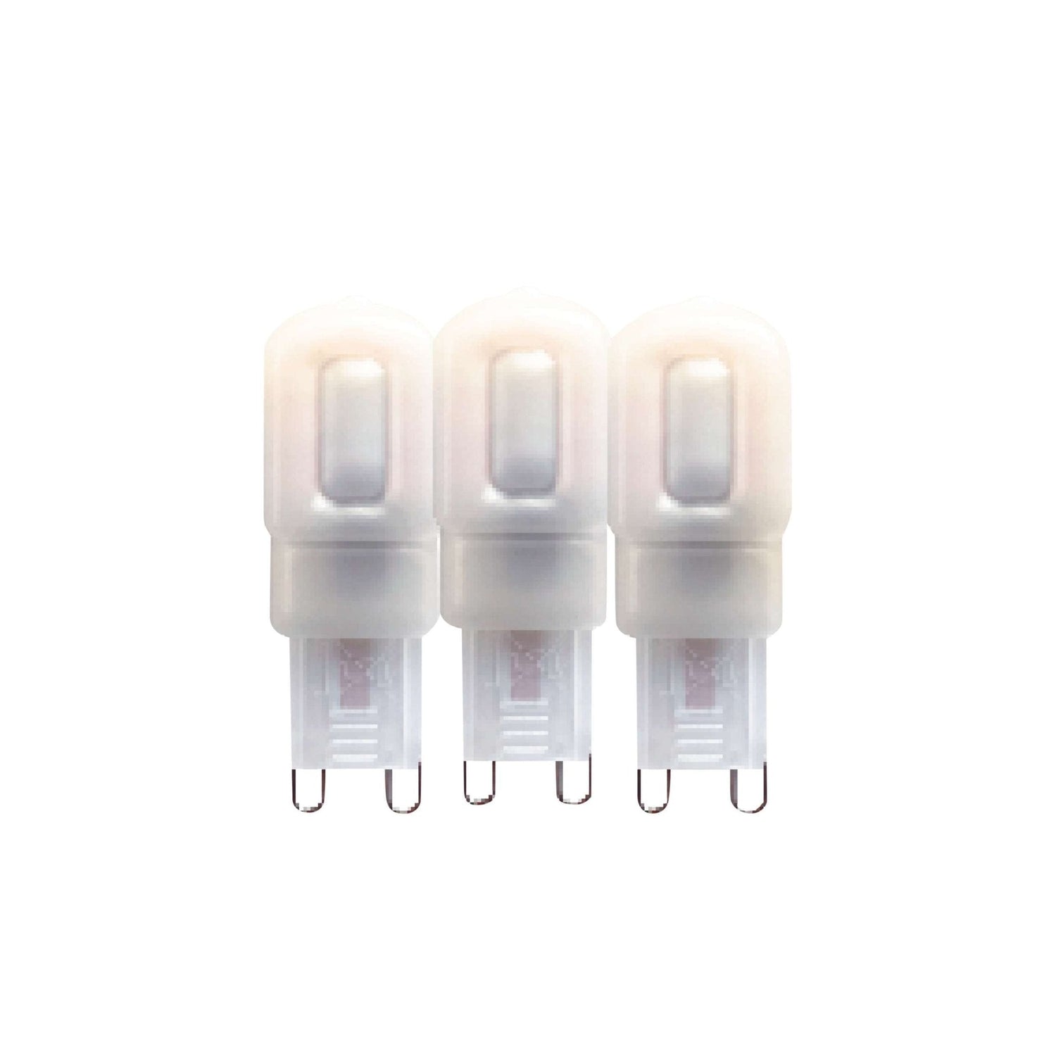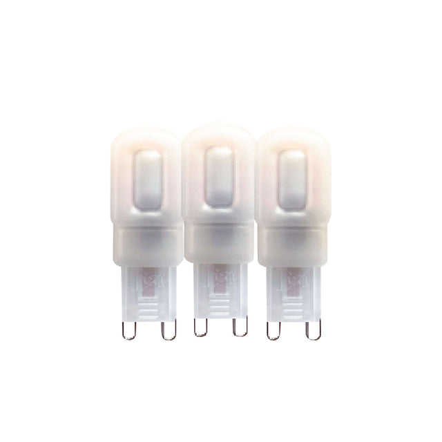 The bulb has a standard G9 socket and is easy to install in your existing fixture. It's made of polycarbonate with an opal finish for even light distribution. It operates on 220-240V and can be used in temperatures from -20°C to 45°C. This set contains three bulbs, ideal for replacing multiple bulbs at once.