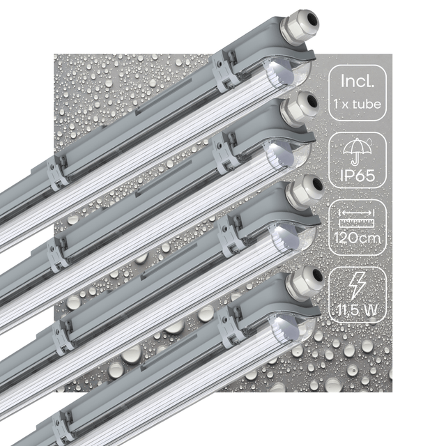 The luminaire is dustproof and protected against water jets (IP65). This makes it ideal for use in damp and dusty environments, such as garages and sheds.