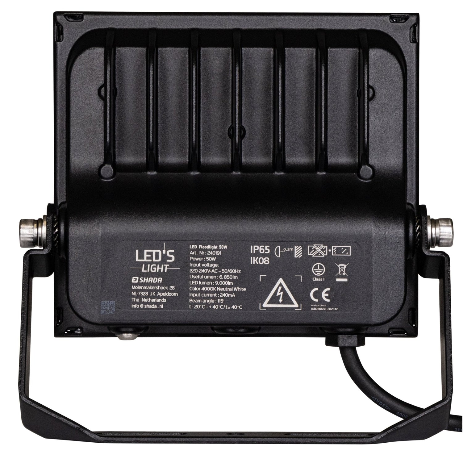 The LED's Light Premium LED Floodlight 50W is a powerful outdoor light for professional applications. With a powerful 6850 lumens of usable light output and a power consumption of only 50 watts , it replaces a 500W halogen floodlight . The lamp provides a bright, cool white 4000K light , ideal for outdoor lighting, parking lots, and industrial applications.